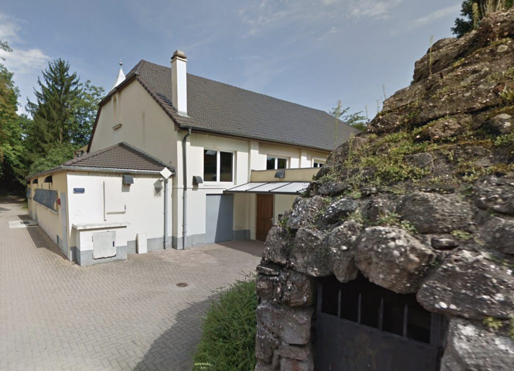 Pour accéder à la salle, qui se situe derrière la grotte de Lourdes, il faut longer l’église Saint-Cyprien sur la droite et le presbytère sur la gauche.